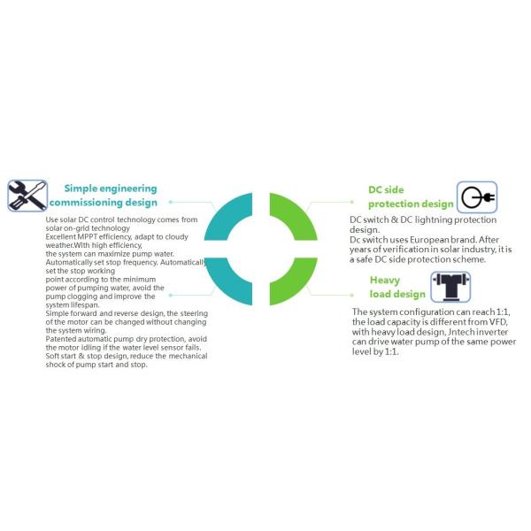 JNTECH Single Phase solar pumping inverter can match with single phase pump with power range from 0.37KW to 2.2KW; the matching power of pump with inverter is 1 :1; Life span of inverter is 15 years.
